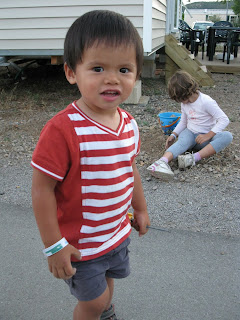 Mais sinon, la plage, l'eau, le sable, la baignade: il a tout adoré! Un bonheur de le voir rire aux éclats et crier dans l'eau.